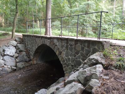 Most přes Kunratický potok severovýchodně od zookoutku v Kunratickém lese, bridge in Kunratice, Prague, Czech Republic