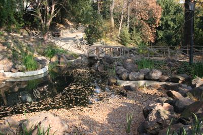 Lávka přes jezírko v Havlíčkových sadech, dřevěná lávka v sadech Gröbovka v Praze-Vinohradech