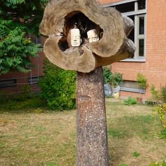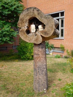 Kovová plastika před školou v Jizerské ulici v Semilech