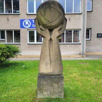 Socha volejbalu před sokolovnou v Letohradě, statue in Letohrad, Czech Republic