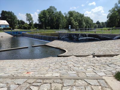 Weir U Žida, Structure de contrôle des eaux sur la rivière Ostravice à Staré Město, République tchèque.