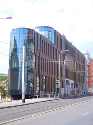 Pomník Pabla Nerudy v parku mezi ulicemi Donátova a Vrchlického