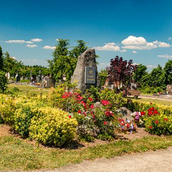 Pomník, pomník padlých rudoarmejců na hřbitově v Luži