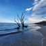 La plage présente un littoral de cinq kilomètres avec des arbres massifs tombés, blanchis par le soleil, dispersés sur le sable près de Jacksonville.