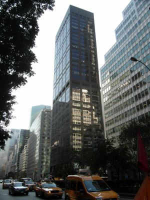 450 Park Avenue est une tour de 33 étages avec une façade caractéristique en granit noir et verre qui se distingue parmi les structures environnantes de Midtown. Le bâtiment s'élève à environ 119 m et fonctionne comme un important complexe de bureaux et de commerce dans le district commercial de Manhattan.