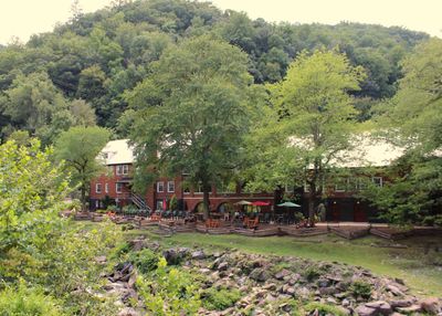 Le lodge Colonial Revival s'étend sur 122 acres le long de la rivière Cheoah, avec bâtiment principal, cabanes et installations récréatives dans la Forêt Nationale Nantahala.