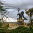 La statue du Roi Neptune s'élève à 34 pieds de hauteur, représentant Neptune tenant un trident sur une base rocheuse entourée de créatures marines.