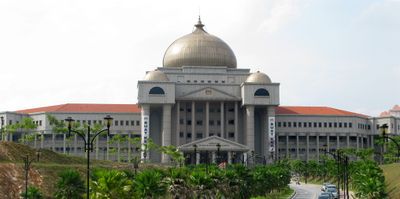 Le bâtiment mélange les traditions de design islamique, maure et palladienne à travers ses dômes courbes et ses colonnades symétriques visibles sur cinq niveaux. Cette fusion architecturale reflète les influences culturelles diverses de la Malaisie et façonne l'apparence globale du complexe.