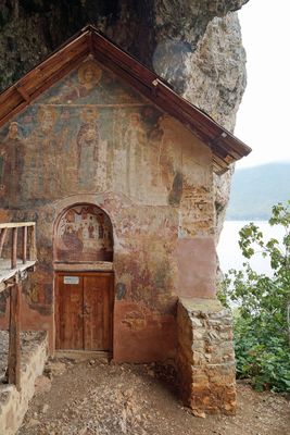 Les murs intérieurs présentent des fresques médiévales datant de 1390, créées par des artistes anonymes qui ont décoré l'espace religieux avec des images orthodoxes.