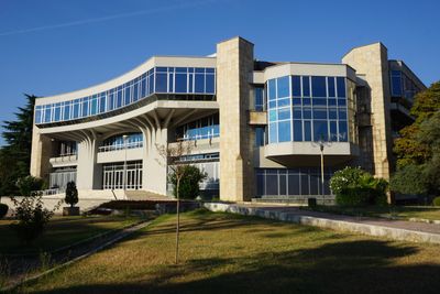 Palace of Congresses, Centre de congrès et espace artistique sur le Boulevard Dëshmorët e Kombit, Tirana, Albanie.