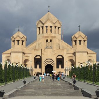La cathédrale de Saint Grégoire l'Illuminateur est une grande structure dôme dans le sud-est du parc Ring, construite en pierre de couleur claire avec une présence marquante dans l'horizon urbain. L'ensemble comprend l'église principale aux côtés de petites chapelles et d'une cour entourant qui crée un espace de rassemblement.