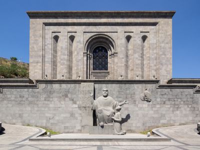 Le Matenadaran conserve plus de 23 000 manuscrits et 300 000 documents d'archives dans un bâtiment monumental au bord nord d'Erevan. L'institution fonctionne comme centre de recherche et expose des manuscrits sélectionnés dans des expositions permanentes et temporaires.