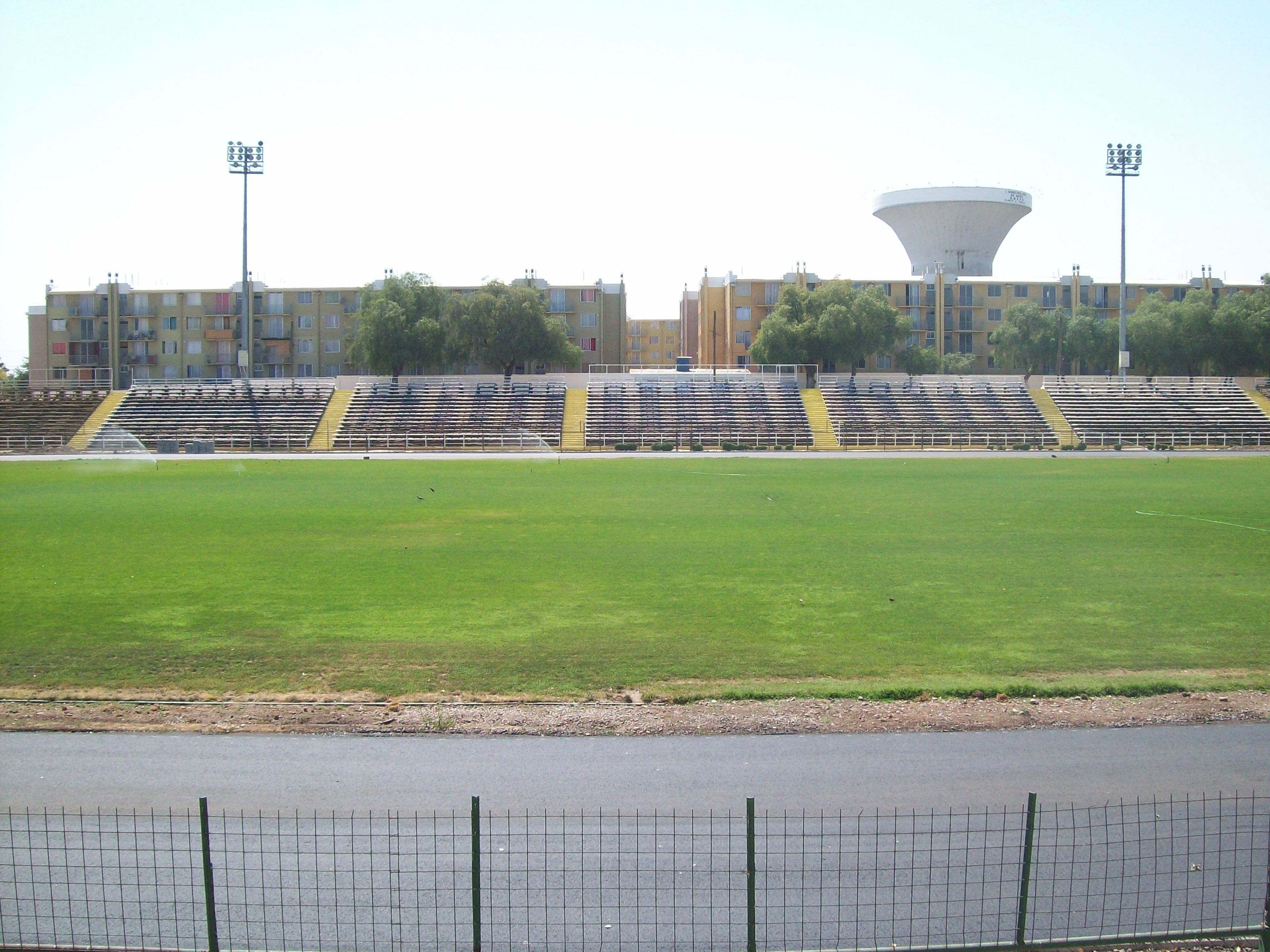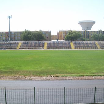 Le stade polyvalent présente un terrain de football central entouré de gradins en béton pouvant accueillir 5 000 spectateurs lors d'événements sportifs.