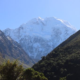 Le Salkantay atteint 6 271 mètres comme plus haute montagne de la chaîne Vilcabamba, présentant des glaciers massifs et des parois rocheuses au-dessus des vallées.