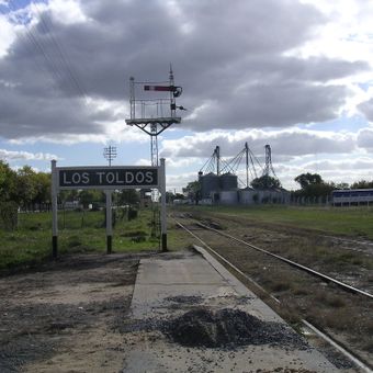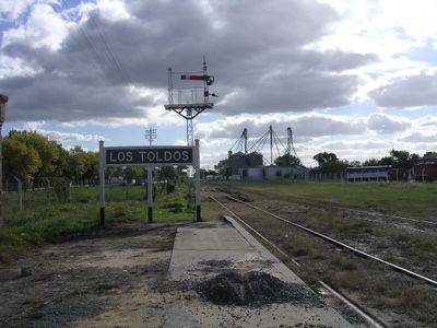 Los Toldos est une ville agricole à l'ouest de la province de Buenos Aires qui s'est développée autour d'une gare ferroviaire. Les écoles, services municipaux et parcs desservent la communauté, tandis que les terres agricoles s'étendent dans le paysage environnant.