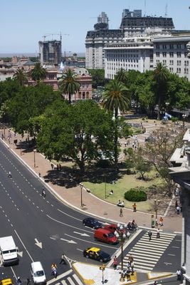 La Place de Mai présente une vaste esplanade pavée entourée d'édifices gouvernementaux et historiques au cœur de Buenos Aires.