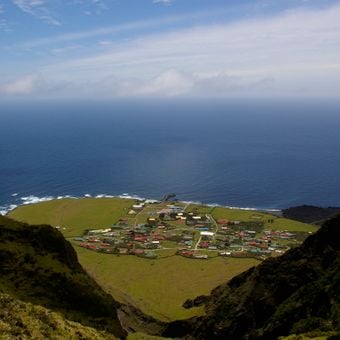 Edinburgh of the Seven Seas est le seul établissement de Tristan da Cunha et se trouve sur une bande côtière plane sous les pentes du volcan Queen Mary's Peak. Les maisons en pierre et en bois longent quelques routes non pavées, et un petit port avec une jetée sert de point d'accostage pour les navires de ravitaillement.