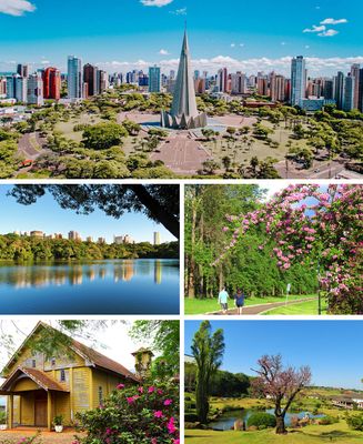 Maringá est une commune de l'État du Paraná située sur un plateau à 515 mètres d'altitude et parcourue d'avenues larges à couverture arborée continue. L'espace urbain s'étend sur un vaste territoire avec des parcs publics et des rues vertes qui définissent son apparence globale.