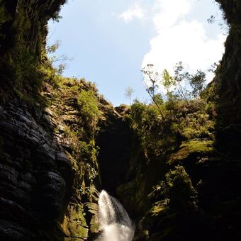 Buraco do Padre est une formation de grotte à Ponta Grossa avec une large ouverture verticale et une cascade souterraine à l'intérieur. L'eau s'écoule à travers des couches de grès qui forment un puits naturel impressionnant.