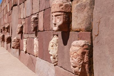 Les murs sont construits avec des blocs de grès massifs ajustés avec une telle precision qu'aucun mortier n'était nécessaire, et ils ont survécu pendant des siècles sans se détériorer. Cette technique de construction révèle le savoir-faire expert et les connaissances en ingénierie des premiers constructeurs de Tiwanaku.