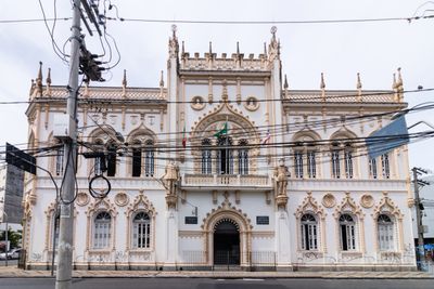 Le bâtiment intègre du calcaire importé de Lisbonne et présente des statues des explorateurs portugais Pedro Álvares Cabral et Vasco da Gama.