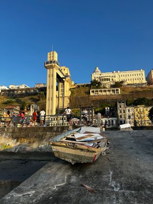 L'Ascenseur Lacerda relie les parties haute et basse de Salvador par deux tours de 72 mètres de hauteur.