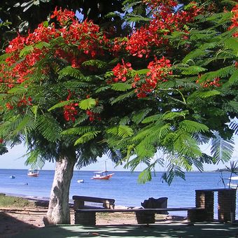 La plage présente deux environnements distincts: des eaux calmes et profondes d'un côté, et des mangroves étendues de l'autre.