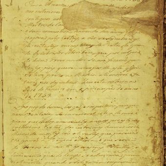 Le manuscrit a été découvert en 1839 à la Bibliothèque Nationale du Brésil, décrivant une expédition portugaise de dix ans à la recherche des mines de Muribeca.