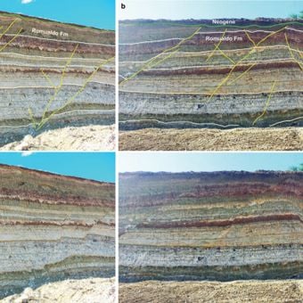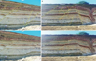 La Formation Santana comprend des couches calcaires horizontales mélangées à des schistes, des siltstones et des grès dans le bassin d'Araripe.