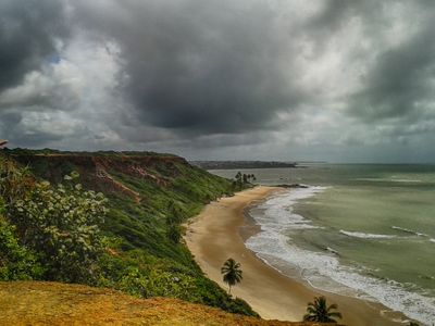 La plage de Coqueirinho affiche des parois de falaises frappantes avec des couches de sable multicolores, où les sections sèches et humides créent des contrastes visuels. Cette formation naturelle est constamment remodelée par les mouvements des marées, offrant différentes vues selon l'heure de la journée.