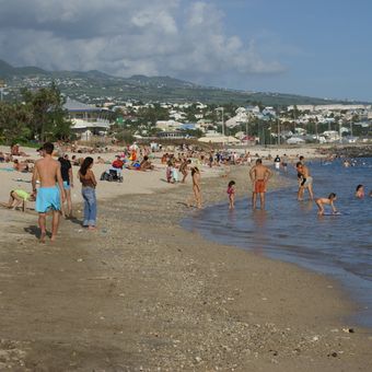 La plage s'étend le long de la côte sud de l'Île de la Réunion, présentant un lagon naturel aux eaux protégées par des récifs coralliens.