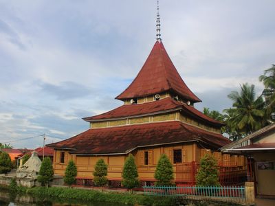 La Mosquée Tuo Koto Nan Ampek est une maison de prière avec des toits en trois niveaux conçus pour évacuer l'eau efficacement dans le climat tropical. Des colonnes en bois soutiennent l'espace intérieur et un plancher surélevé protège la structure de l'humidité.