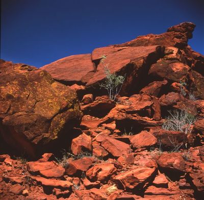 Les motifs géométriques et les symboles de pistes animales gravés dans les roches montrent le savoir traditionnel et l'expression artistique du peuple Arrernte. En marchant sur le site, vous pouvez voir comment ces symboles restent gravés dans la pierre rouge et reflètent le lien des habitants avec la terre.