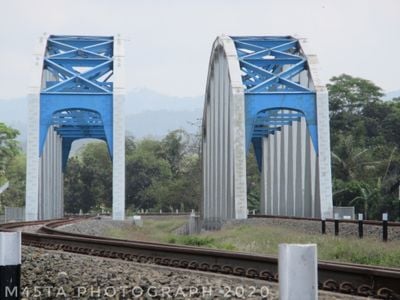 Le pont a ete construit a l'origine dans le cadre du developpement ferroviaire a Java central pour connecter les communautes de la region. Il a subi une modernisation qui s'est poursuivie jusqu'en mai 2020 pour permettre l'exploitation en double voie et augmenter la capacite de transport.
