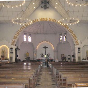La cathédrale du Saint-Rosaire présente des fondations en pierre, une grande salle de congrégation et des éléments architecturaux gothiques avec influences locales.