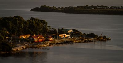 Regatta Point, Gare ferroviaire et zone portuaire à Strahan, Tasmanie.