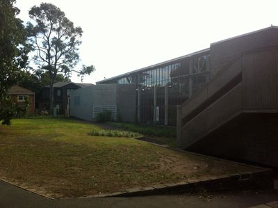 Harold Holt Memorial Swimming Centre, Centre de natation brutaliste à Glen Iris, Australie.