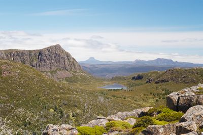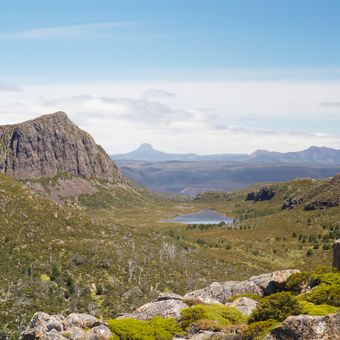 La réserve comprend de nombreux lacs alpins, des pics escarpés en dolérite et des formations glaciaires au sein du patrimoine naturel tasmanien.