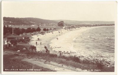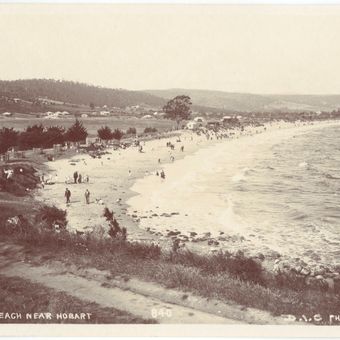 La plage de 1,2 kilomètre s'étend entre Second Bluff et Kangaroo Bluff, offrant des vues sur l'estuaire de la Derwent vers South Arm et l'île Bruny.