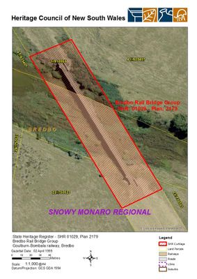 Le pont ferroviaire de la rivière Bredbo s'étend sur 130 mètres avec dix travées, chacune mesurant 12 mètres de centre à centre.