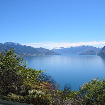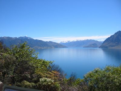 La région des Lacs du Sud comprend de nombreux plans d'eau entourés par les sommets enneigés des Alpes du Sud, incluant le lac Wakatipu et le lac Wanaka.