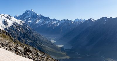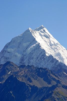 L'Aoraki / Mont Cook atteint 3 724 mètres d'altitude, ce qui en fait la plus haute montagne de Nouvelle-Zélande, avec trois sommets et des formations glaciaires.