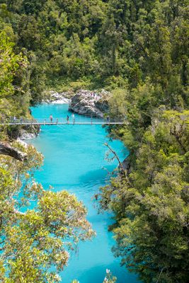 La Hokitika Gorge est un canyon étroit taillé dans le granit par le fleuve Hokitika, où l'eau s'écoule entre des parois rocheuses abruptes. Ces falaises escarpées forment un passage naturel spectaculaire qui s'étend sur plusieurs kilomètres.