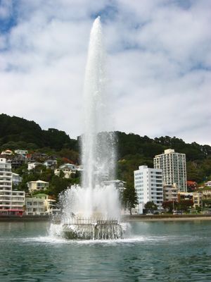Carter Fountain, Fontaine portuaire à Oriental Bay, Wellington, Nouvelle-Zélande.