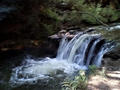 La cascade tombe de deux mètres dans un grand bassin où les eaux thermales maintiennent une chaleur constante pendant toute l'année.