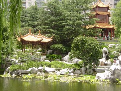 Le Jardin Chinois de l'Amitié comprend des pavillons, des éléments aquatiques, des formations rocheuses et des plantes disposés selon les principes du jardin chinois.