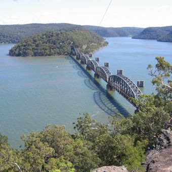 Le pont ferroviaire du fleuve Hawkesbury est une structure en treillis d'acier qui traverse le fleuve en Nouvelle-Galles du Sud et relie Brooklyn à Cogra Bay. Le pont comprend huit portées de longueurs variables qui s'étendent ensemble sur environ 887 mètres à travers l'eau.