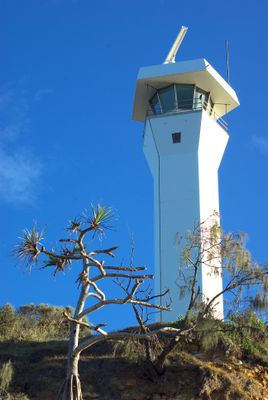 Le Phare de Point Cartwright présente une tour hexagonale blanche de 34 mètres surplombant la pointe sud de l'entrée du fleuve Mooloolah.