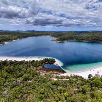 Le lac McKenzie est un lac d'eau douce situé sur K'gari dans le Parc national de Great Sandy au Queensland, entouré de plages de sable blanc. L'eau est remarquablement claire et pure, tandis que les rivages de sable descendent progressivement vers l'eau.