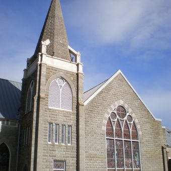 L'église du Sacré-Cœur présente des arcs en ogive, des voûtes nervurées et de grands vitraux conçus et fabriqués en France au début des années 1900.